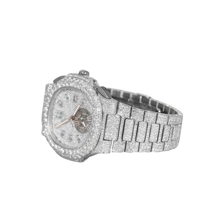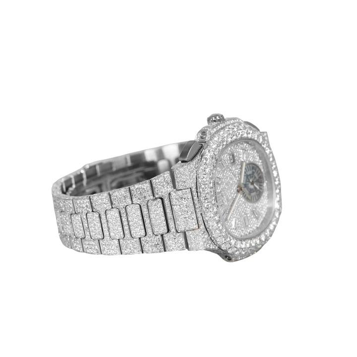 นาฬิกาข้อมือสแตนเลสสตีลทรงกลมสีโรสโกลด์และสีเงินสองสี ประดับเพชรโมอิสซาไนต์แบบกำหนดเองได้ สำหรับผู้ชาย แฟชั่นเครื่องประดับ