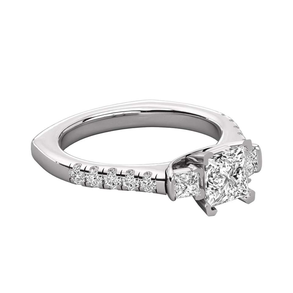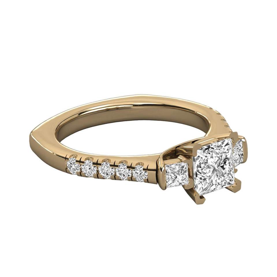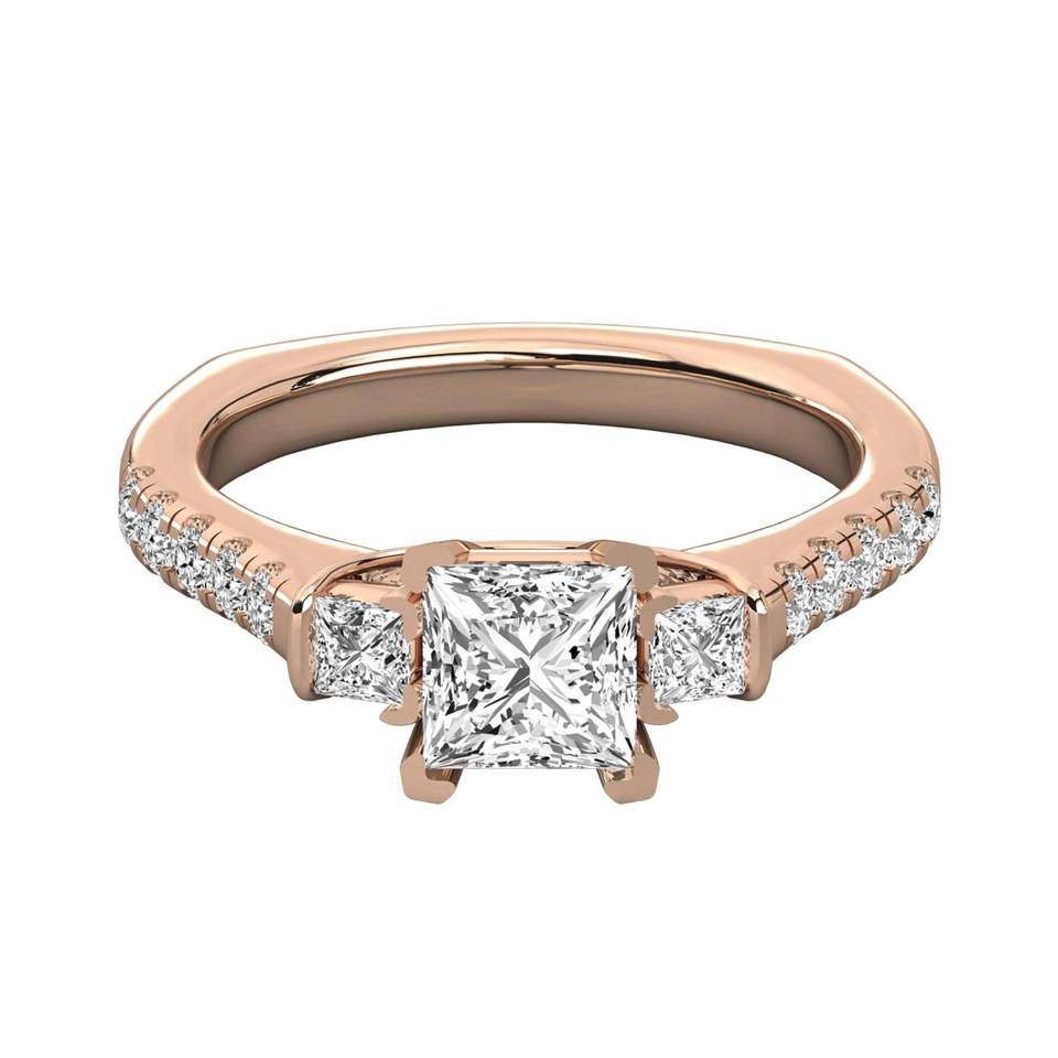 แหวนหมั้นหิน3ชิ้นประดับเพชรและเจ้าหญิงทรงกลม