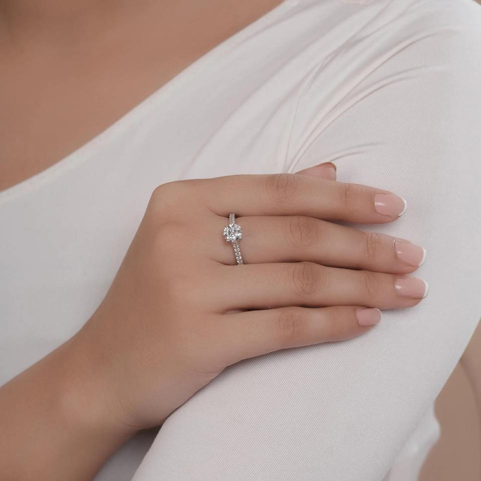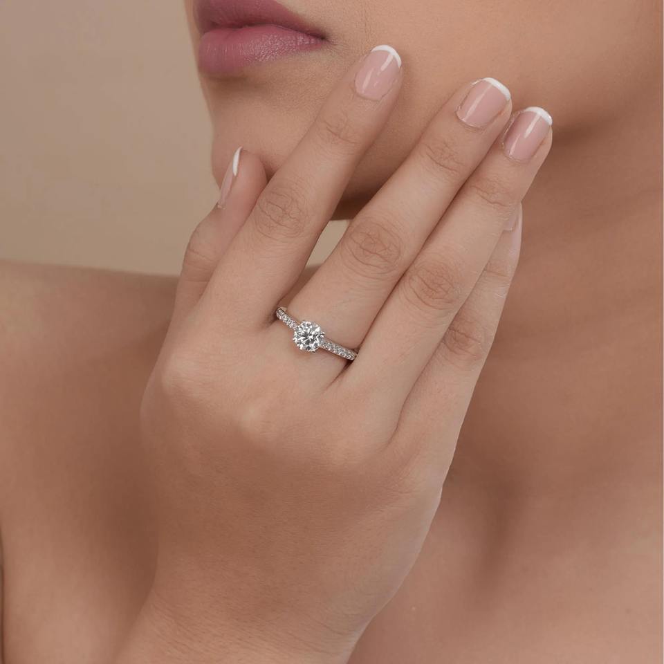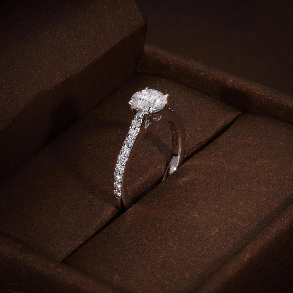 แหวนหมั้นเพชรทรงกลม F VVS1 VVS2 เพชรเพาะเลี้ยงในห้องปฏิบัติการ แหวนเพชรเม็ดเดี่ยวทรงกลม แหวนหมั้น แหวนแทนใจ