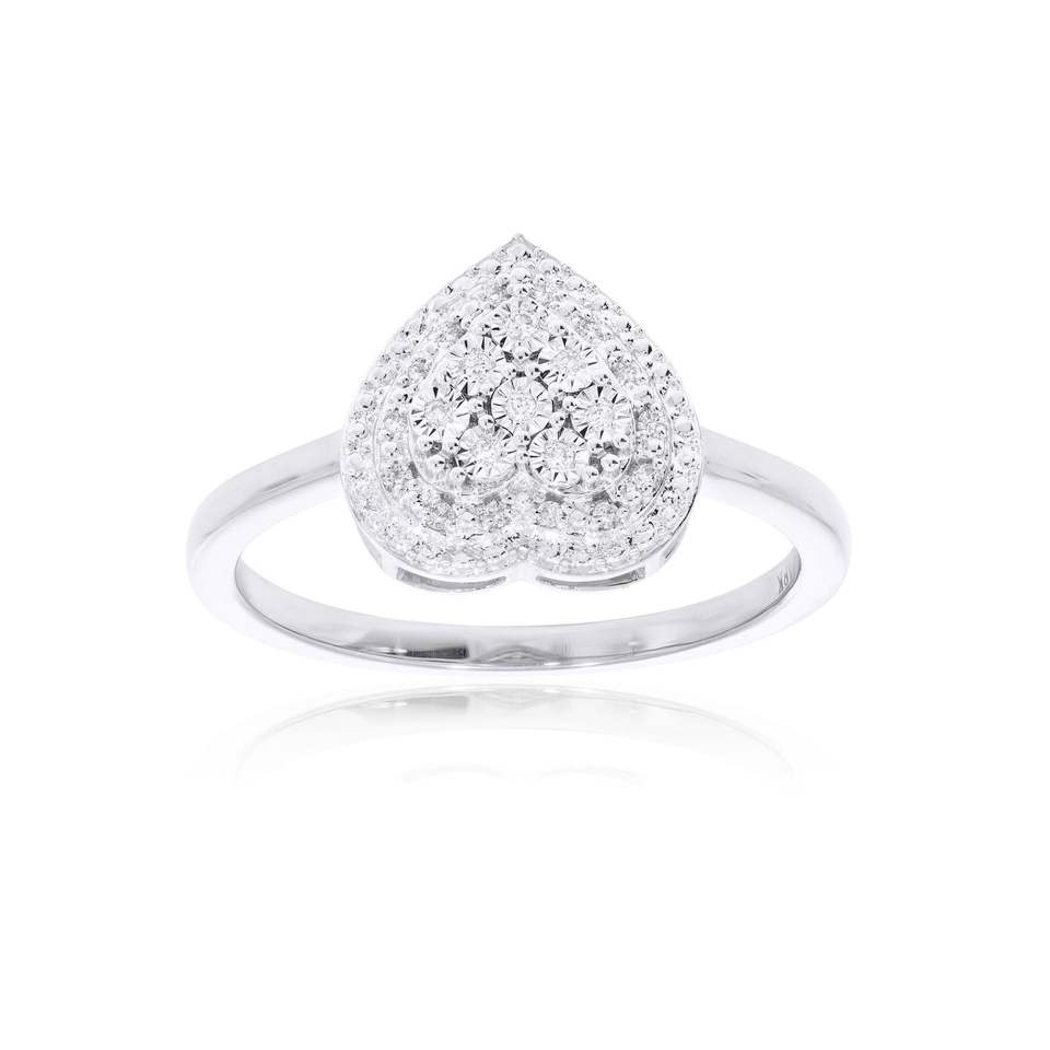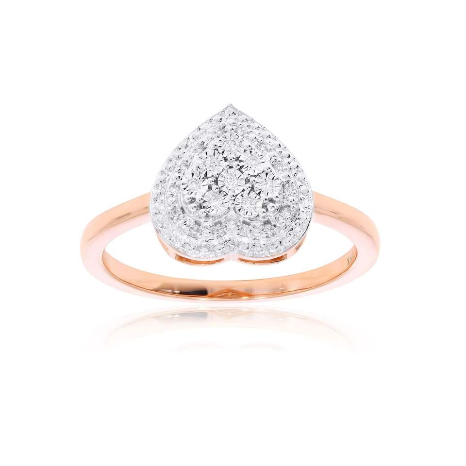ชุดแหวนหมั้นเพชรทรงกลมและภาพลวงตารูปหัวใจ