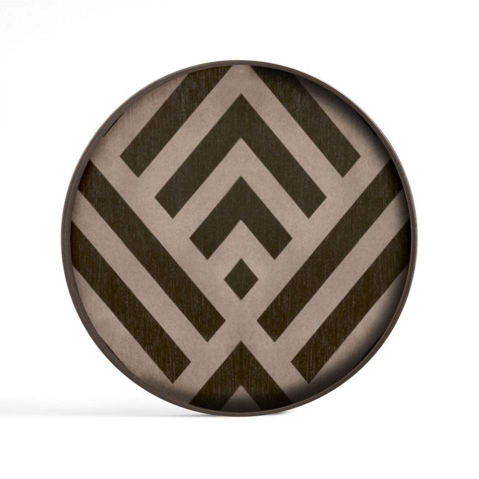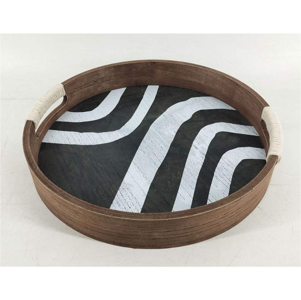 ถาดเสิร์ฟเคลือบเงาแบบกลมพร้อมหูจับ ถาดไม้พิมพ์ลายตามสั่ง ถาดอาหารตกแต่ง ขายส่งเครื่องเคลือบลายดอกไม้