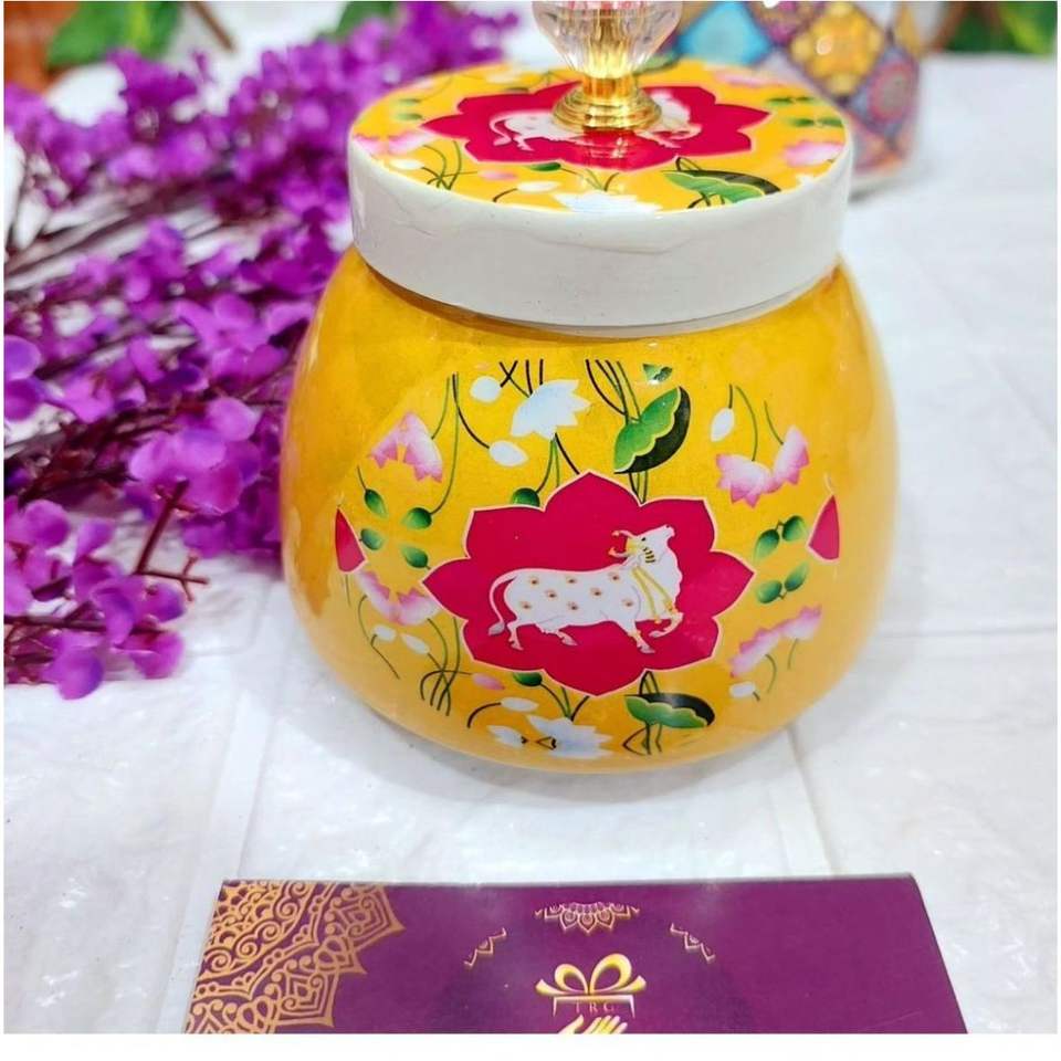 Round Enamelware Storage Jar with Natural Wood Cover | Multi-Purpose Candy Nut Spice Container | Decorative Tabletop Organizer