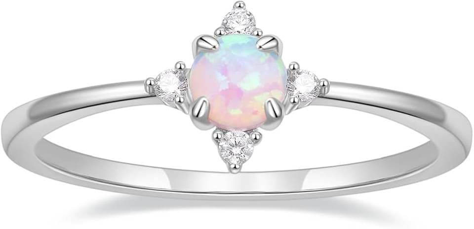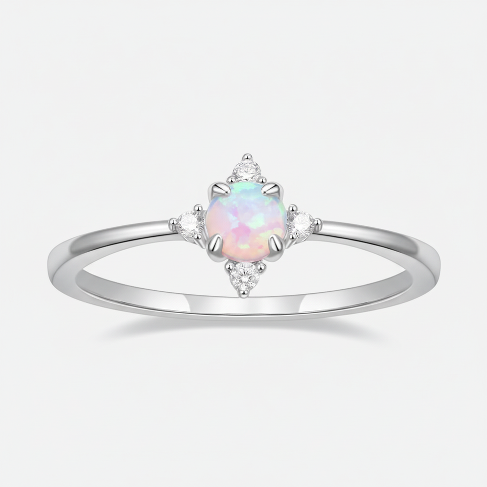 Round Fire Opal Gemstone Ring For Women's,Handmade Cz Side Stone Opal Ring Gift.