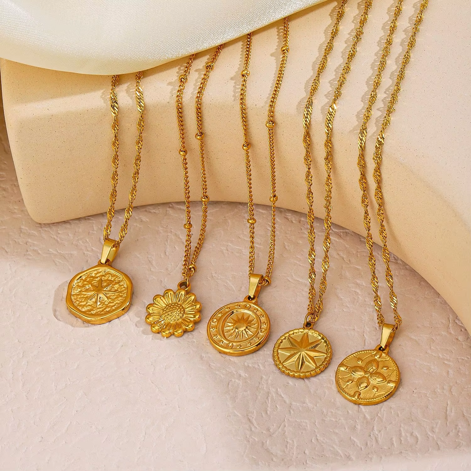 สร้อยคอจี้ดอกไม้สแตนเลสทรงกลมสไตล์วินเทจคลาสสิก