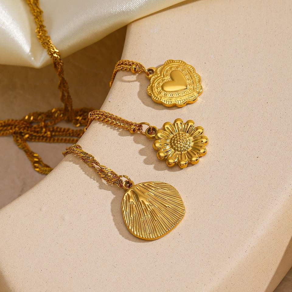 สร้อยคอจี้ดอกไม้ทรงกลมทำจากสเตนเลสสตีลสไตล์วินเทจสร้อยคอประดับดอกไม้