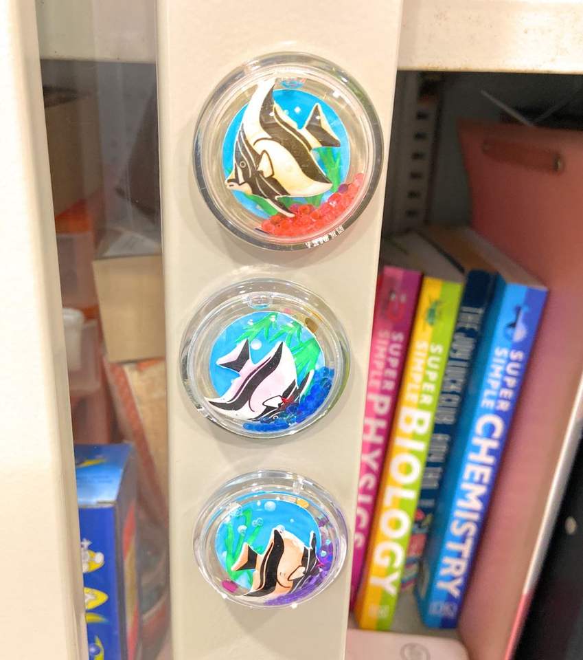 คำอธิบาย:แม่เหล็กอะคริลิคเหลว ประดับด้วยปู 3 มิติ และลูกปัด