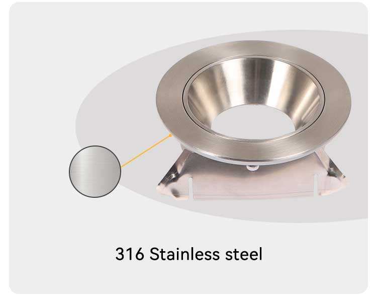 กรอบไฟดาวน์ไลท์แบบเปลี่ยนหลอดได้ GU10 ทรงกลม ใช้กับหลอด MR16 ทำจากสแตนเลส 316 สำหรับไฟสปอตไลท์ LED มาตรฐาน IP44 เหมาะสำหรับที่อยู่อาศัย