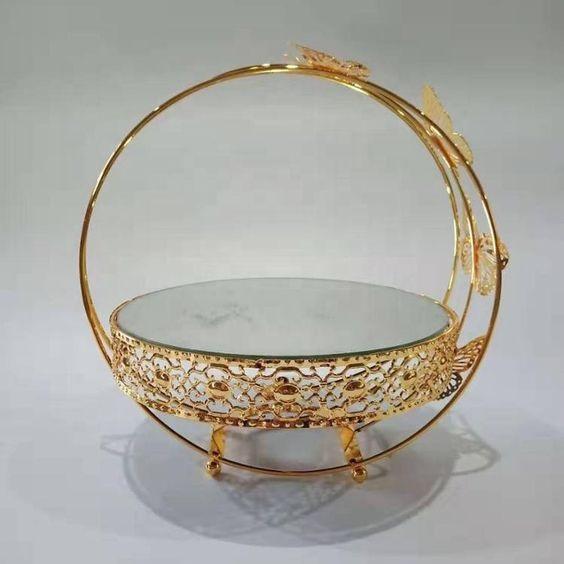 แท่นวางเค้กโลหะกระจกสีทองทรงกลมสำหรับตกแต่งงานแต่งงานแท่นวางเค้กหรูหราและหรูหราสำหรับงานปาร์ตี้และงานอีเว้นท์