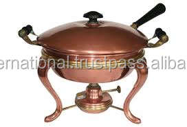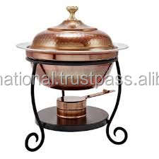 จานชุบด้วยทองเหลืองและทองแดงม้วนด้านบนอย่างสง่างามทรงกลม