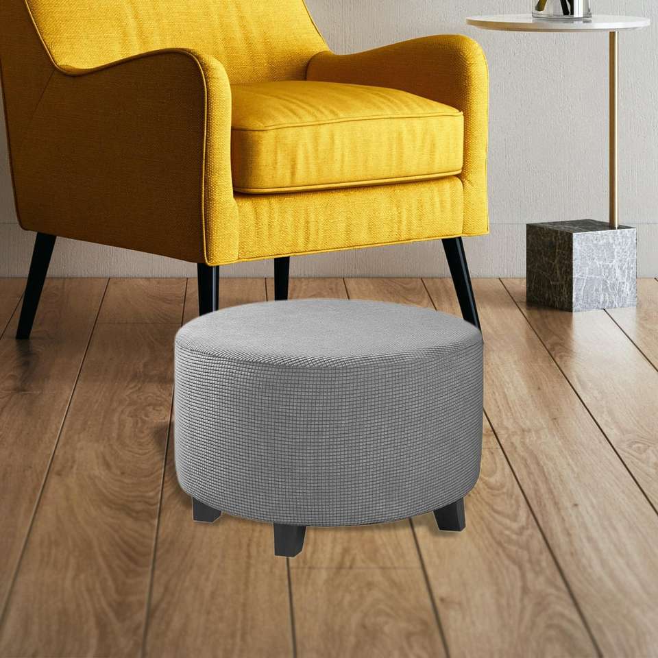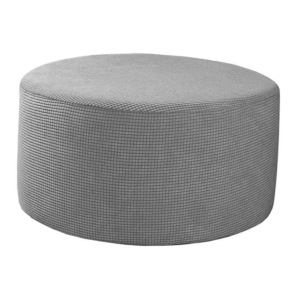 Round Gray Ottoman Slipcover Footstool Cover Washable Printed Pattern Protective Couch Cover for Three-Seat Sofa Living Room Use