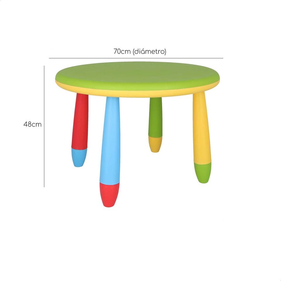 ชุดโต๊ะเด็กทรงกลมสีเขียวพร้อมเก้าอี้ 2 ตัว ทำจากพลาสติกแข็งแรงทนทาน ขนาด 70x48 ซม. และ 38x35x67 ซม.