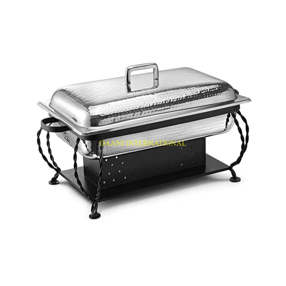 จานอุ่นอาหารทำจากทองแดงทุบทรงกลมพร้อมขาตั้งเหล็กดัดและฝาโดมที่อุ่นอาหารบุฟเฟ่ต์สำหรับจัดเลี้ยงงานแต่งงานและร้านอาหาร