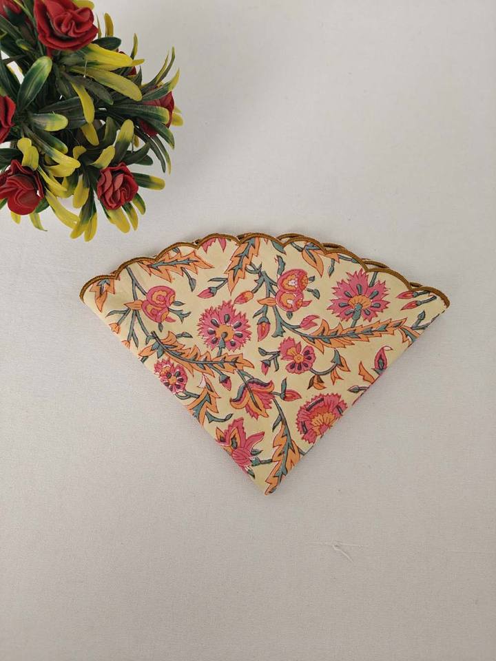 ชุดผ้าเช็ดปากทรงกลมลายดอกไม้แบบโมเดิร์นงานแฮนด์เมดชุดผ้าคอตตอนแบบนำกลับมาใช้ใหม่ได้มีขอบถักลายพิมพ์นุ่มสำหรับงานเลี้ยงในบ้านใบไม้