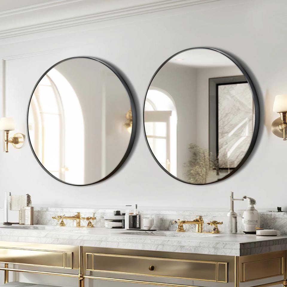 กระจกแขวนผนังโลหะทรงกลมทันสมัยสำหรับตกแต่งห้องนอนห้องนั่งเล่นห้องแต่งตัวการตกแต่งภายในบ้านร่วมสมัย