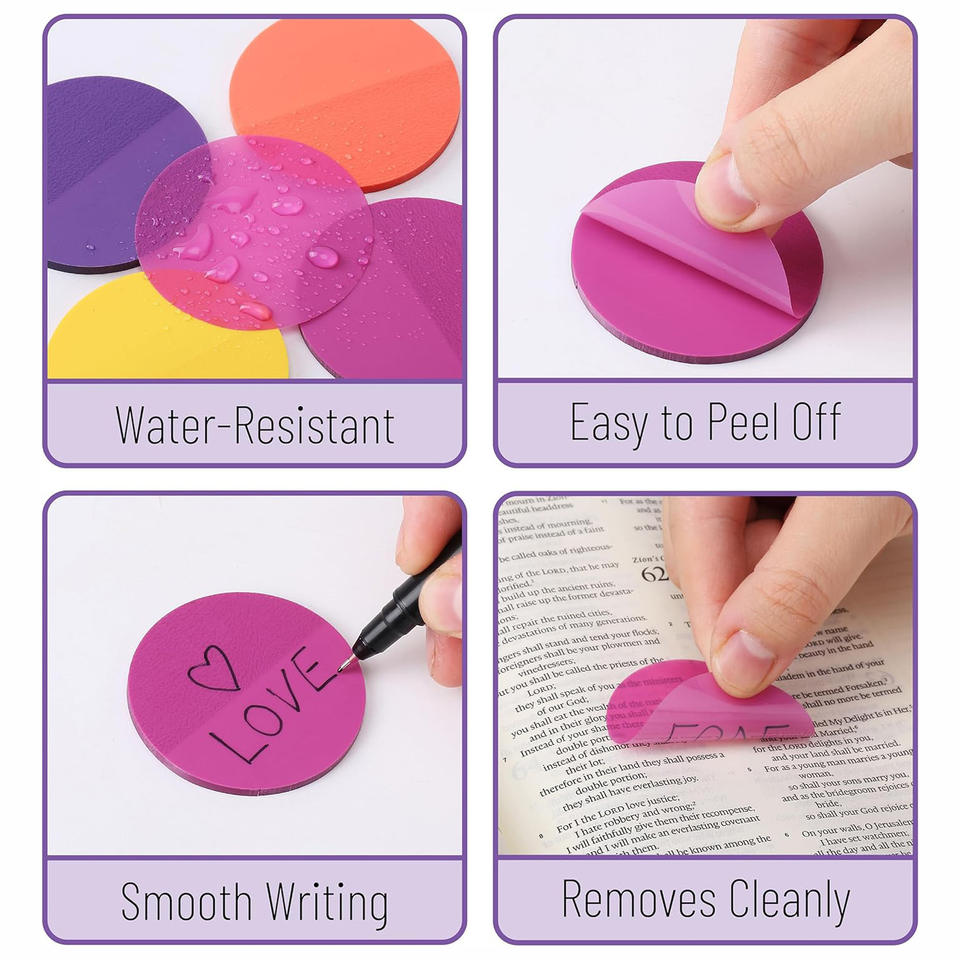 Round Indexv 8 Colo Mini Circle Transparent Pet Sticky Notes Clear Waterproof Self-Adhesive Translucent Stick Tab Pads
