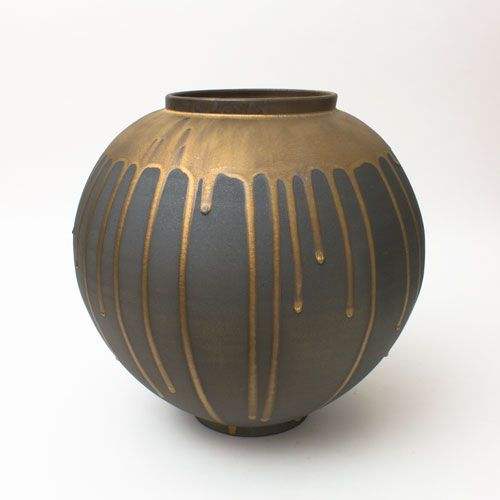 แจกันกระถางต้นไม้สีทองหรูหราทำจากเซรามิกทรงกลมขอบไม่เรียบสำหรับใช้ในร่มกลางแจ้ง