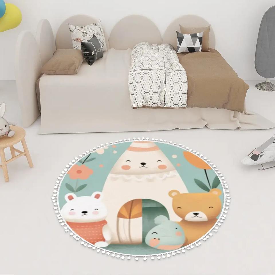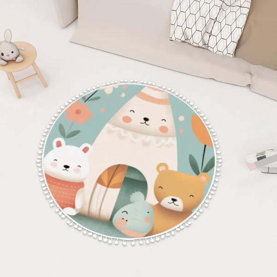 เสื่อปูพื้นทรงกลมพร้อมพรมปูพื้นปอมปอมสำหรับพื้นที่เล่น