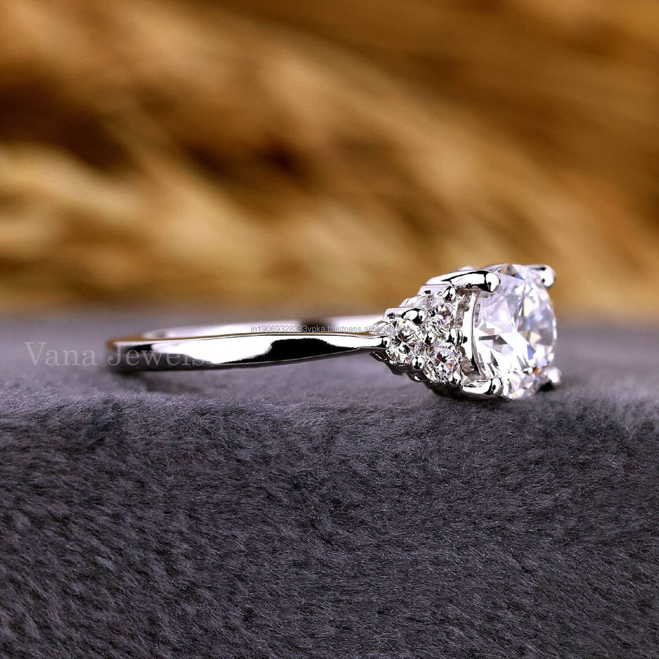 แหวนหมั้นเพชรแบบกลมสำหรับห้องปฏิบัติการของเธอแหวนแต่งงานเพชรที่สร้างขึ้นเฉพาะของขวัญครบรอบปีที่กำหนดเองสำหรับภรรยา