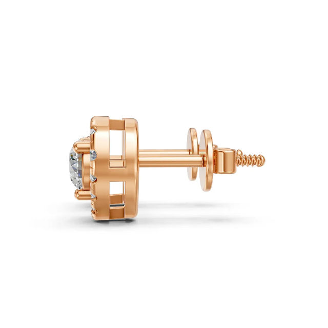 ชุดหัวหมุดเพชรกลมสำหรับผู้หญิงต่างหูเม็ดเดี่ยวหรูหราขนาด14K 18K 22K แบบสั่งทำ