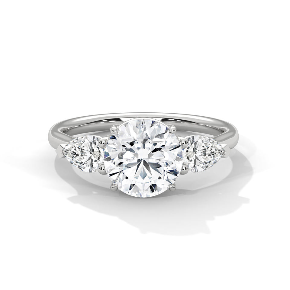Round Lab-Grown Diamond Three Stone Engagement Ring in White Gold – Classic Timeless Bridal Diamond Ring for women
