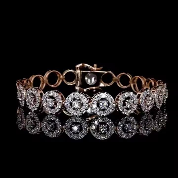 กำไลข้อมือเพชรโมอิสซาไนต์ทรงกลมสำหรับผู้ชายและผู้หญิง 5.50 กะรัต ทรงกลม ดีไซน์หรูหราแบบวงแหวนเพชร