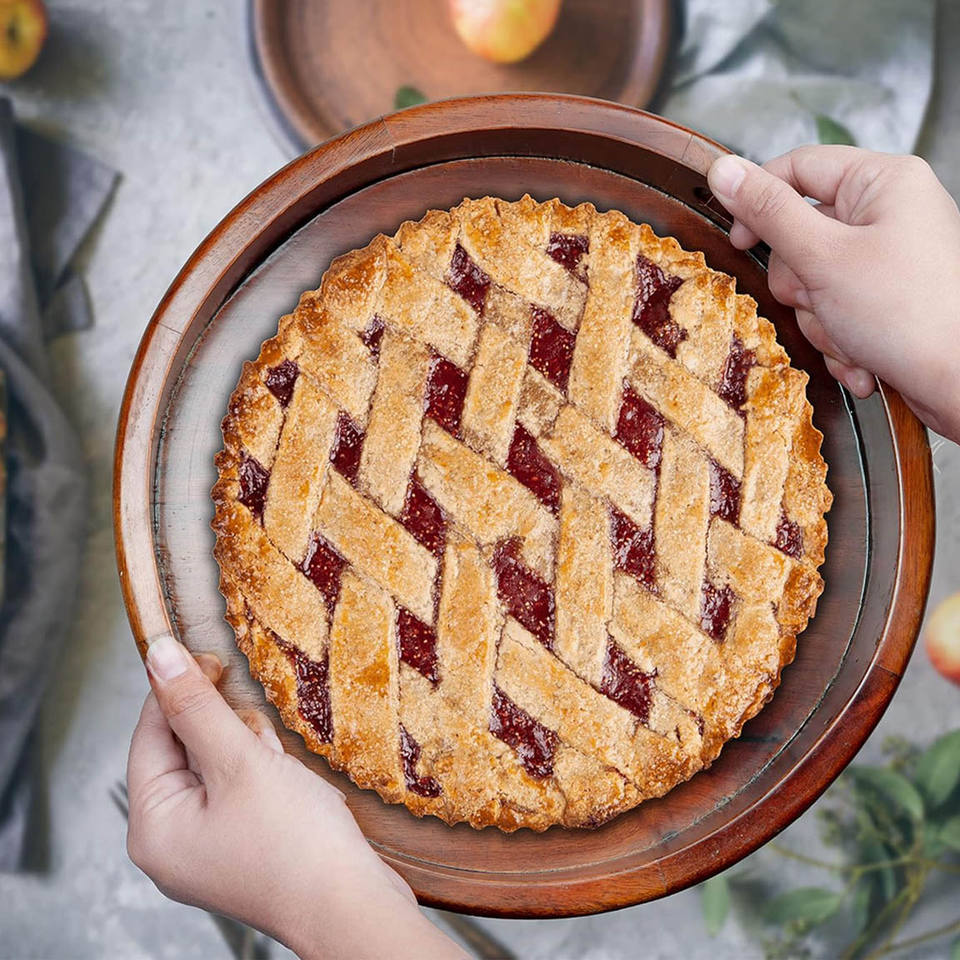 ถาดเสิร์ฟไม้มะม่วงทรงกลมพร้อมด้ามจับตัดทำด้วยมือชุด2ชิ้นสำหรับรับประทานอาหารว่างโต๊ะกาแฟในครัว