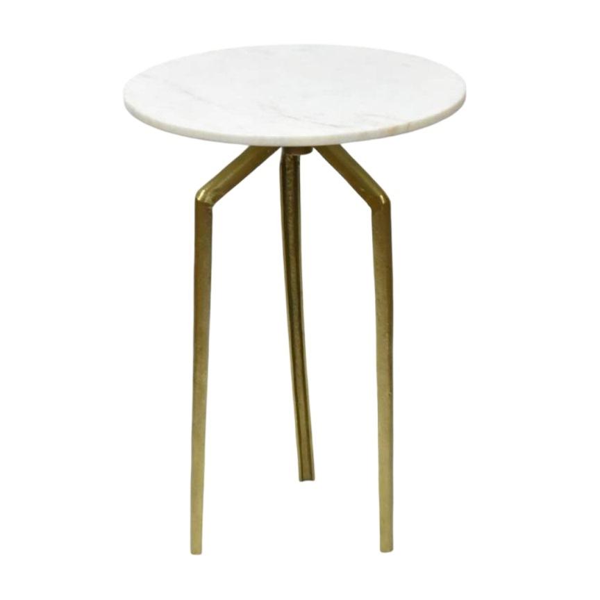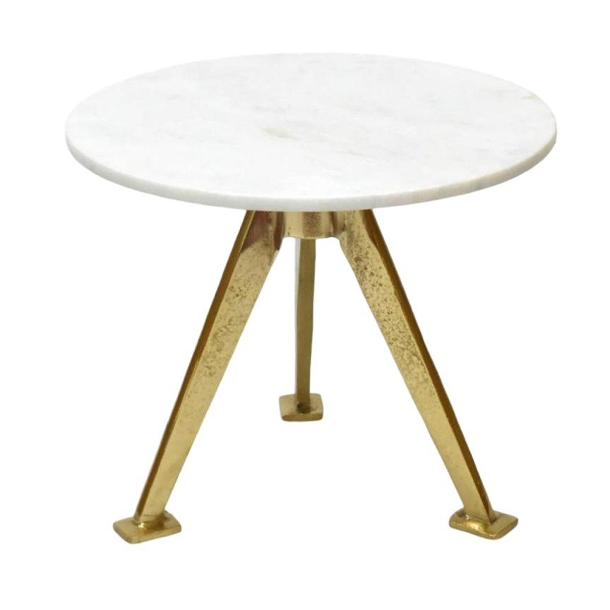 โต๊ะหินอ่อนและอลูมิเนียมทรงกลมพร้อมโต๊ะข้างโลหะสำเร็จรูปสามขาสีทองสำหรับเฟอร์นิเจอร์บ้าน