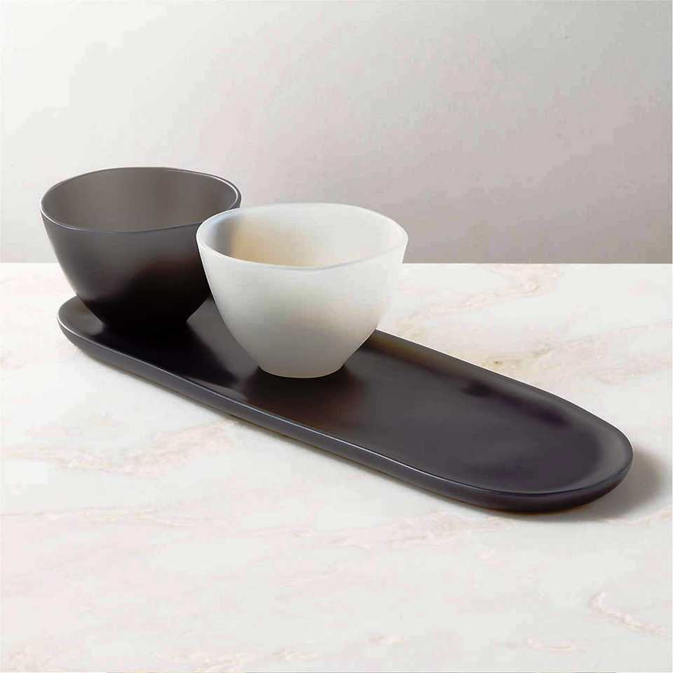 ชามเสิร์ฟเรซิ่นทำมือสีดำด้านขัดเงา เป็นมิตรกับสิ่งแวดล้อม สำหรับใช้ในงานปาร์ตี้ ล้างในเครื่องล้างจานได้ ผลิตในอินเดีย