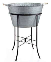 รอบอ่างเครื่องดื่มโลหะที่มีด้ามไม้และยืน Flared,ชุบสังกะสีสีเทา