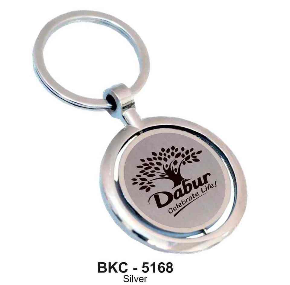 พวงกุญแจโลหะทรงกลมสำหรับของขวัญส่งเสริมการขายแบรนด์องค์กร ผิวสัมผัสสีเงิน พรีเมียม