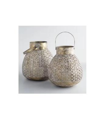 ชุดโลหะทรงกลมมี2ดีไซน์แบบโบราณโบราณของโมร็อกโกโคมไฟเหล็กเทียนพร้อมที่จับของตกแต่งบ้าน