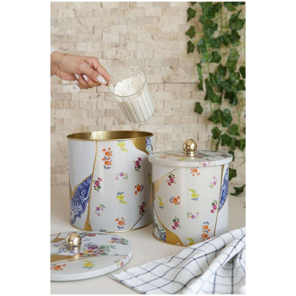ชุดกล่องดีบุกโลหะทรงกลมเส้นผ่านศูนย์กลาง175x180-DIA 140x ที่จับ150 (2ชิ้น) kintsugi ดอกไม้เส้นใยทองดีไซน์แบบ kintsugi