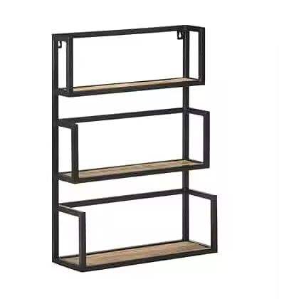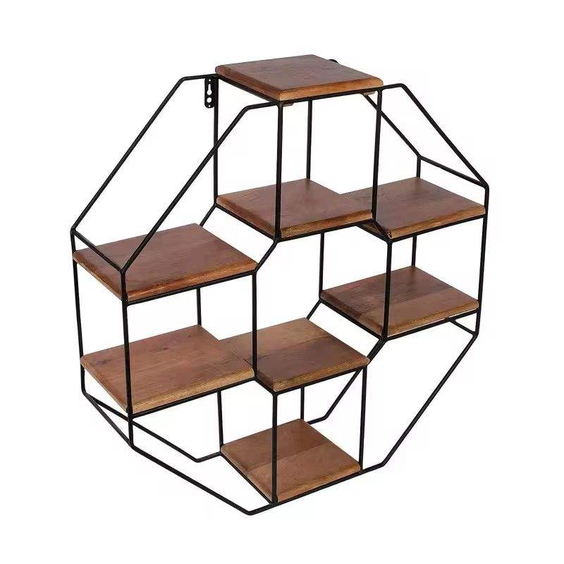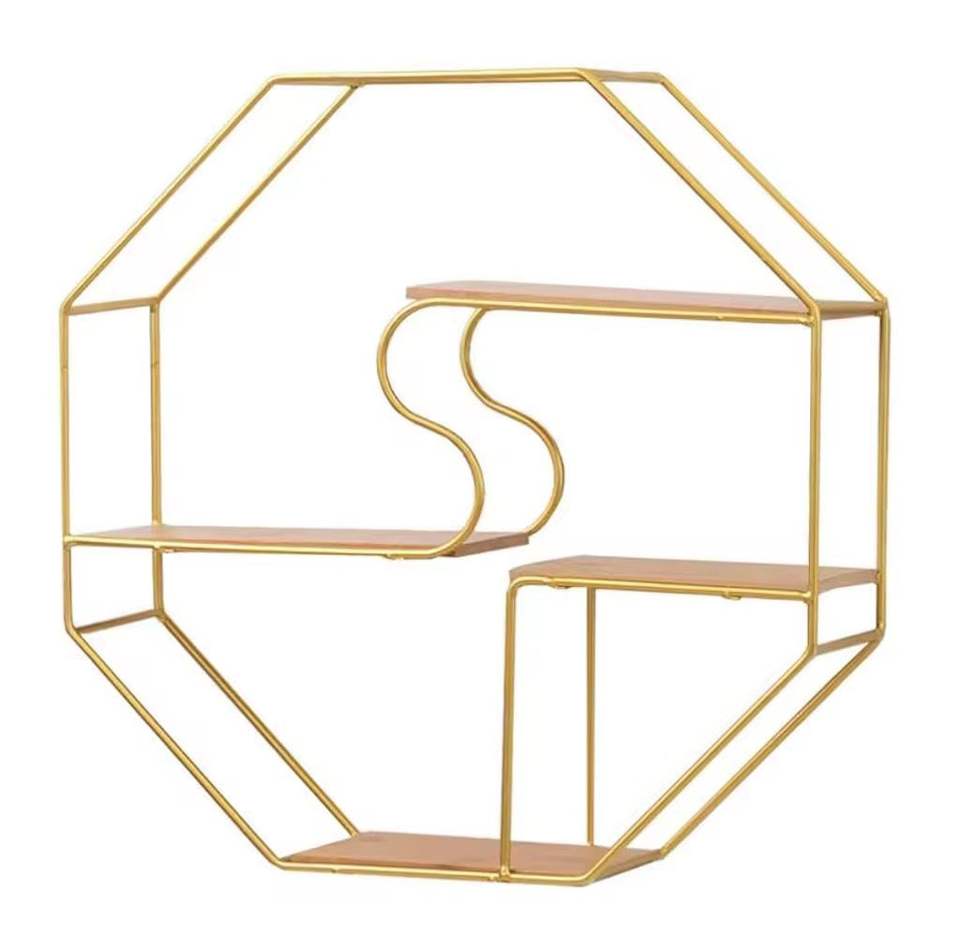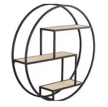 ชั้นวางของติดผนังโลหะทรงกลม ชั้นวางไม้ลอยตัว โครงวงกลม ชั้นวางโชว์ของตกแต่งบ้านสไตล์โมเดิร์น