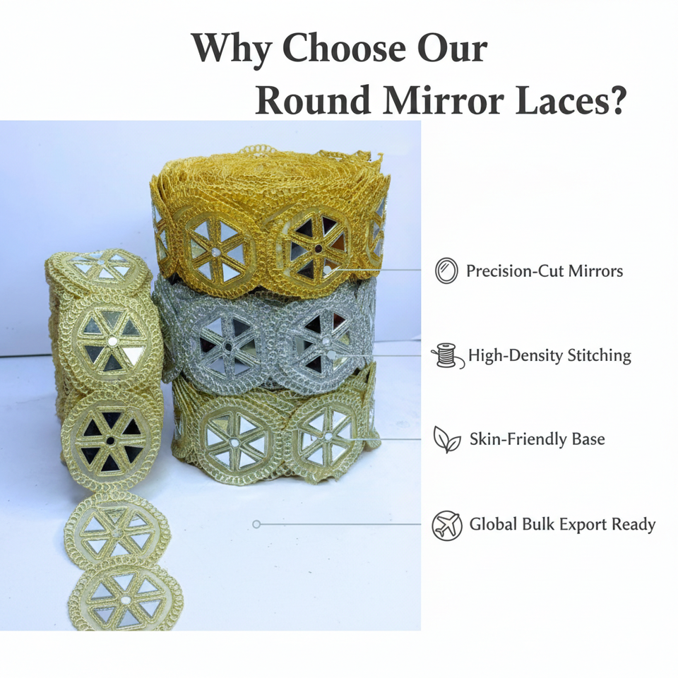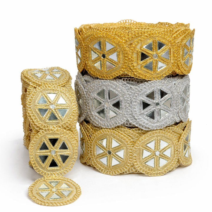 กระจกทรงกลมลายดอกไม้สไตล์วินเทจ พร้อมลูกไม้ปักสำหรับชุดเจ้าสาว ขอบประดับเลื่อมแบบสั่งทำ ขายส่งคุณภาพสูงสำหรับงานตัดเย็บ