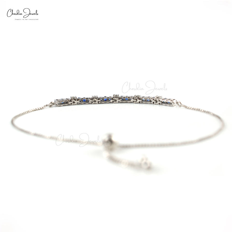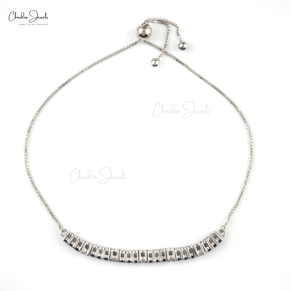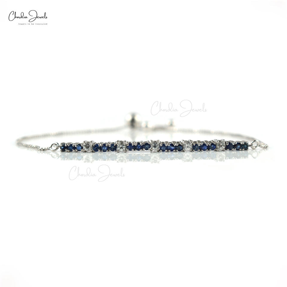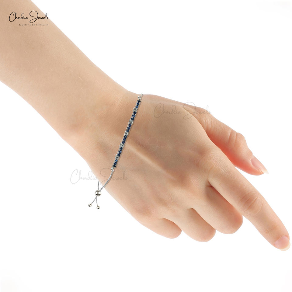 สร้อยข้อมือเทนนิสพลอยหลายทรงกลมคุณภาพสูงจากเพทายสีขาวธรรมชาติและไพลิน925สเตอร์ลิงสร้อยข้อมือผู้หญิง