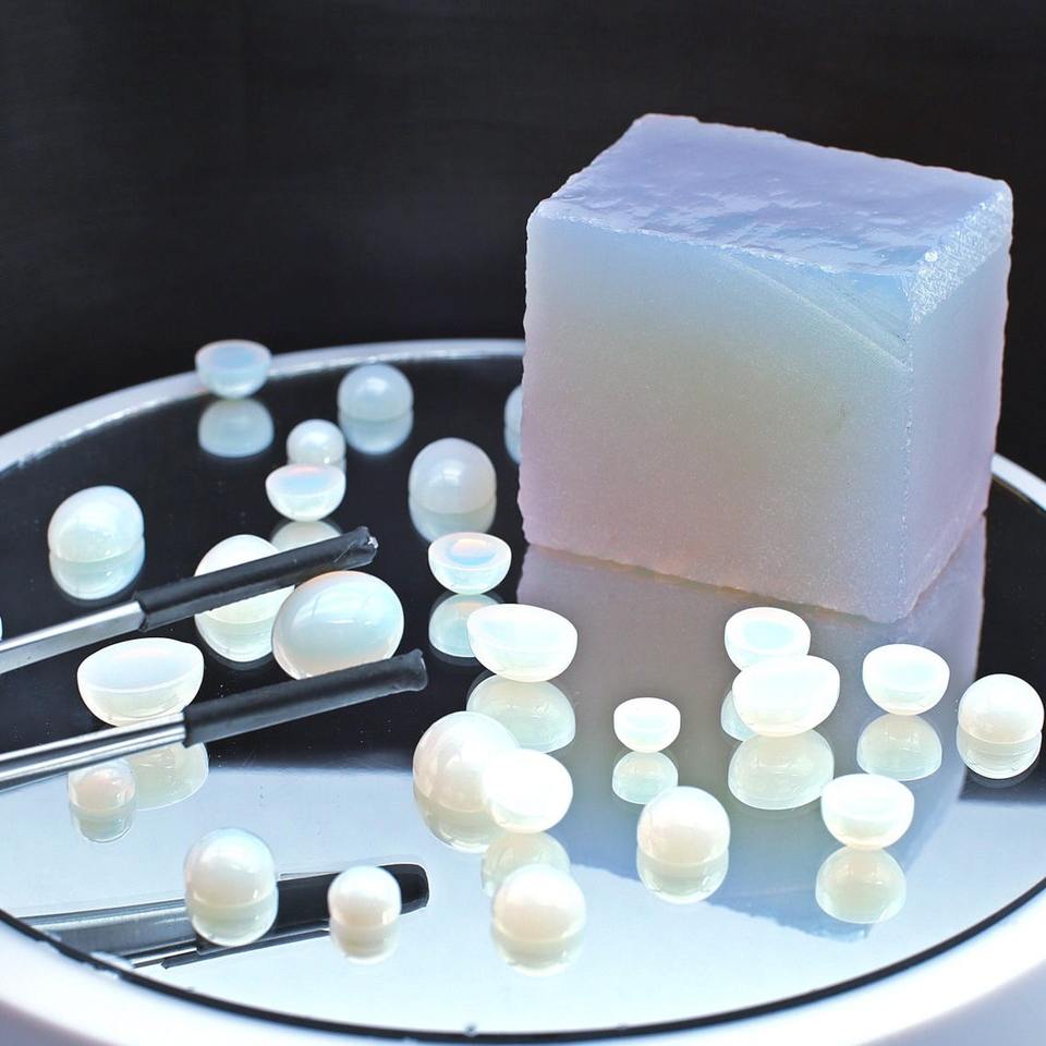หยกธรรมชาติทรงกลม สีขาว นาโนคริสตัล ทนความร้อน โอปอลสีขาวนม อัญมณี