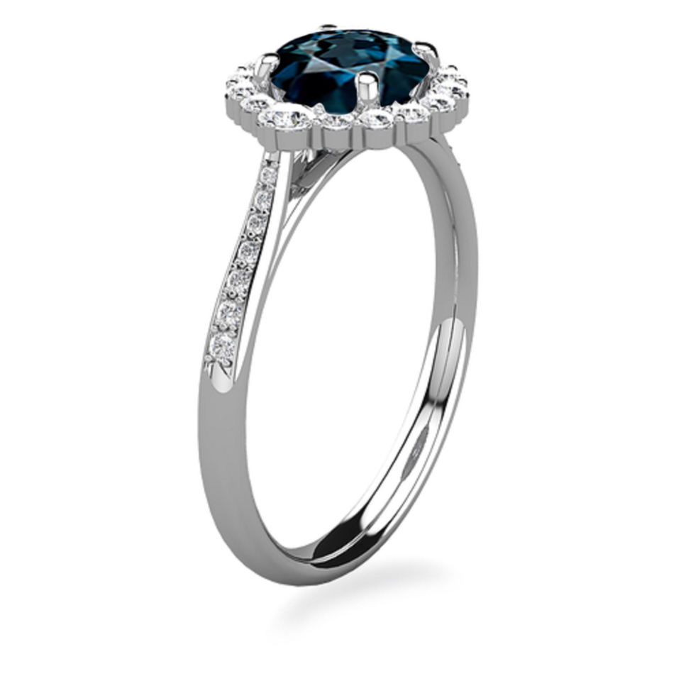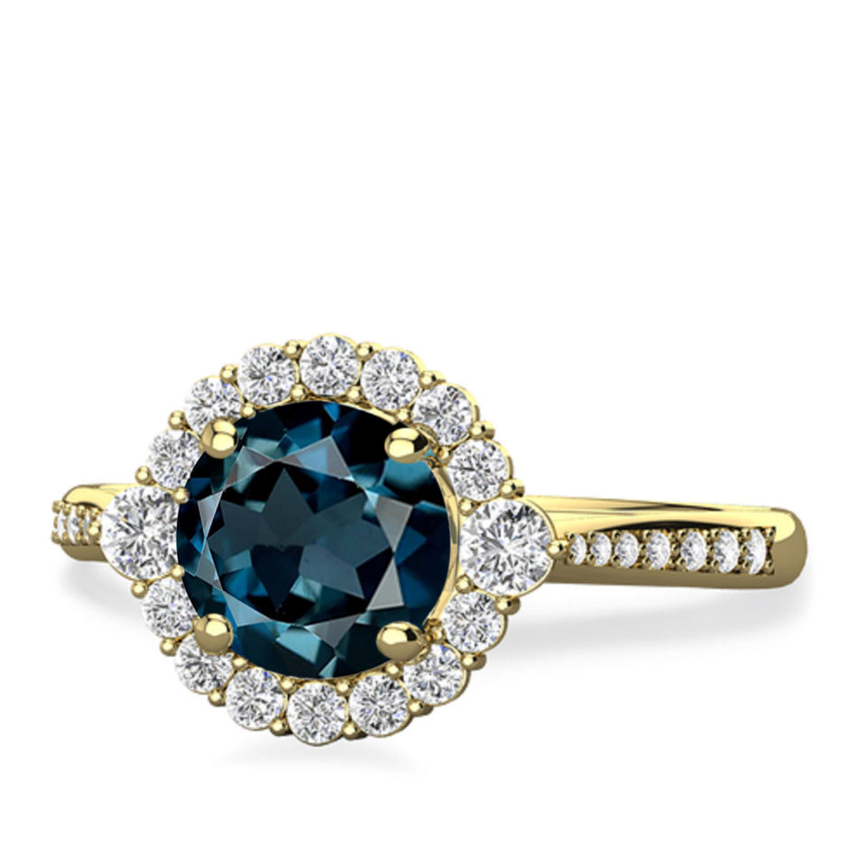 กลมธรรมชาติลอนดอนพลอยบุษราคัมสีฟ้ากับเพชรคลัสเตอร์แหวนหมั้นทอง18K แหวนแต่งงานแท้เครื่องประดับชั้นดีสำหรับผู้หญิง