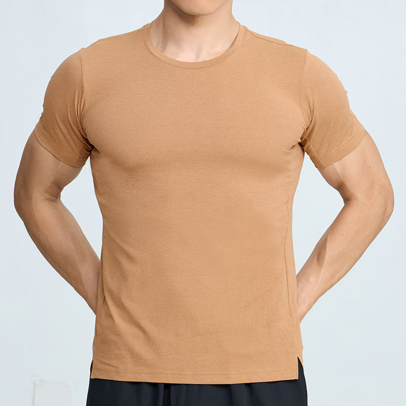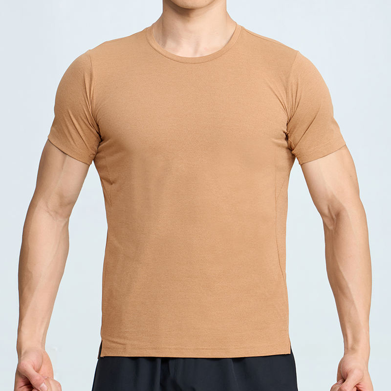เสื้อยืดสำหรับผู้ชายเสื้อยืดลำลองผ้ายืดหยุ่นด้านข้างสำหรับผู้ชายเสื้อยืดคอกลมลำลอง