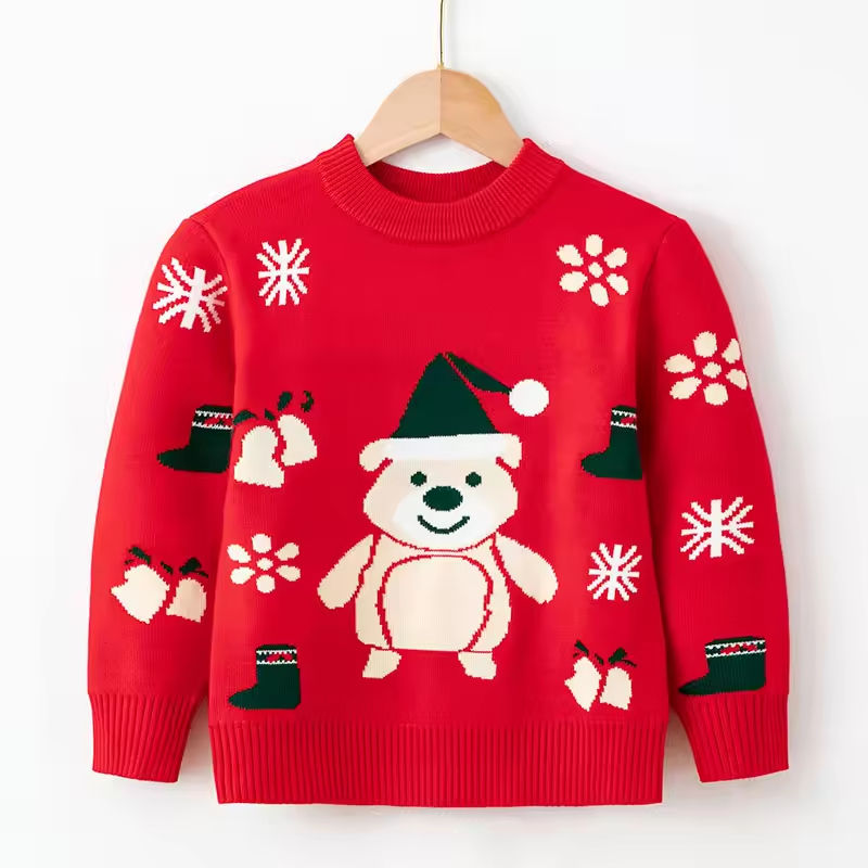 Round Neck Christmas Cartoon Sweater for Kids Warm Cotton Dinosaur Jacquard Pattern for Boys and Girls in Autumn
