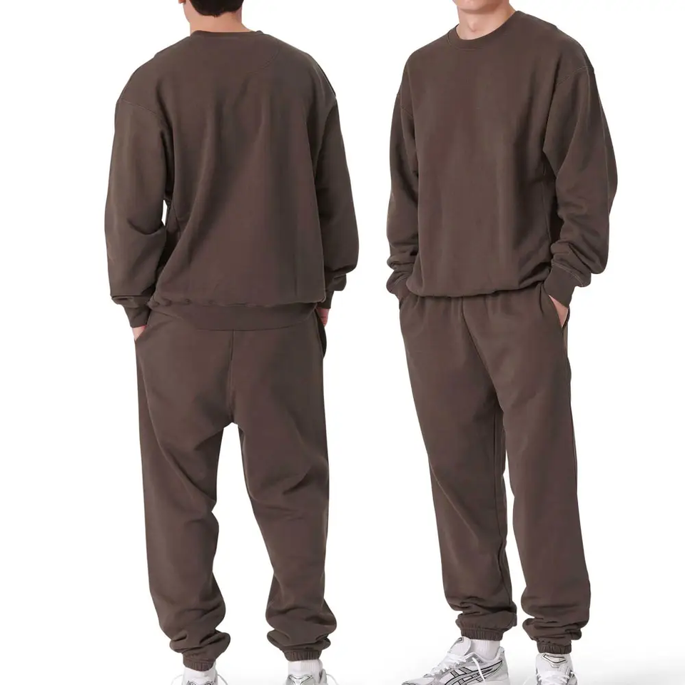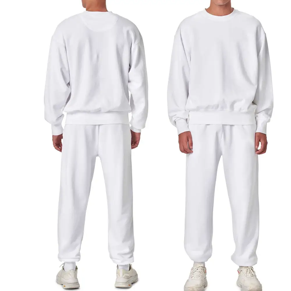 เสื้อสเวตเตอร์ผู้ชายหลวมคอกลมแบบกําหนดเองและชุดวอร์มสองชิ้น Jogger ชุด Sweatsuit ส่วนบุคคลชายคุณภาพสูง
