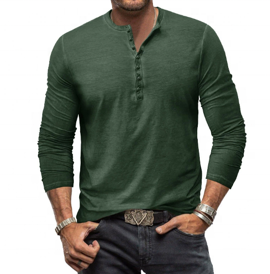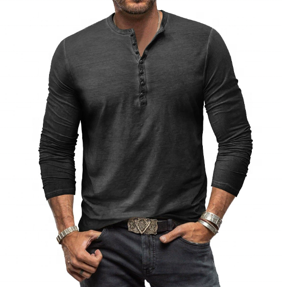 เสื้อเชิ้ตแขนยาวคอกลมผู้ชายติดกระดุม ปักโลโก้ได้ เนื้อผ้านุ่มสบาย
