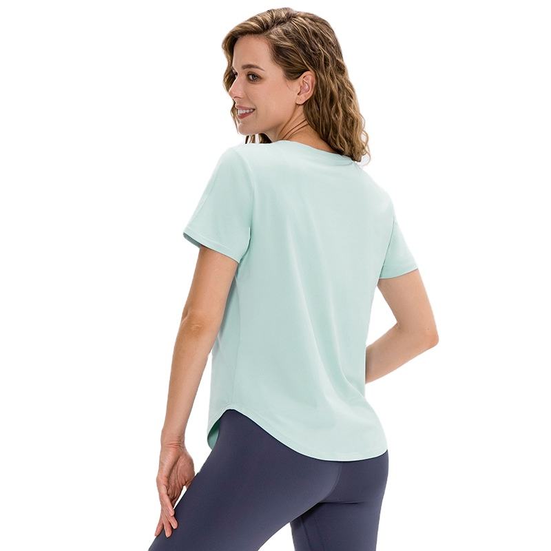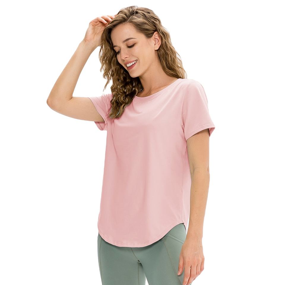 เสื้อยืดคอกลมรัดรูปสำหรับโยคะ สกรีนโลโก้ได้ เสื้อยืดผู้หญิงขายดีช่วงซัมเมอร์ แห้งเร็ว แขนสั้น