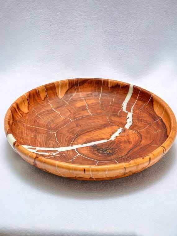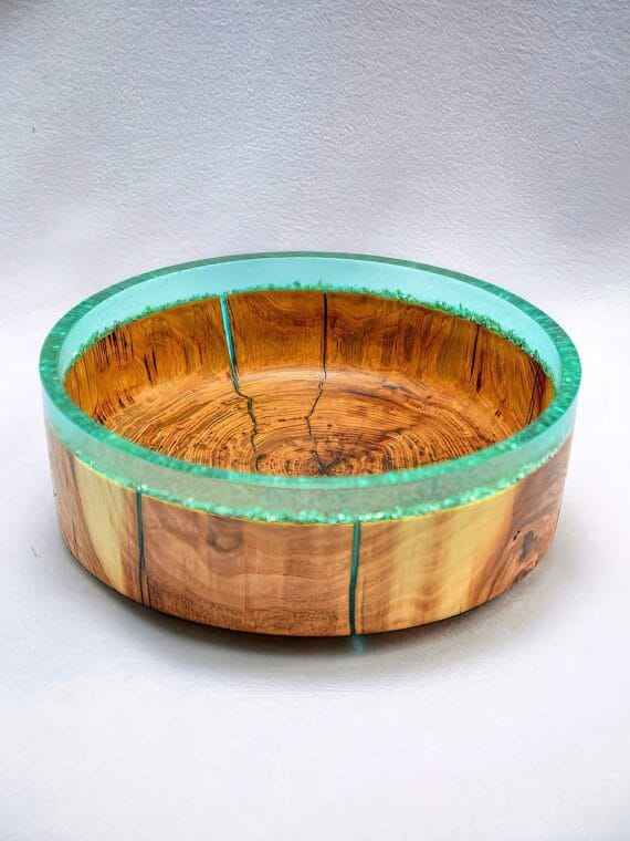 ชามสลัดและโต๊ะทำจากไม้ไผ่อีพ็อกซี่คลื่นมหาสมุทรทรงกลมชามไม้สำหรับใช้ในห้องครัวโรงแรม