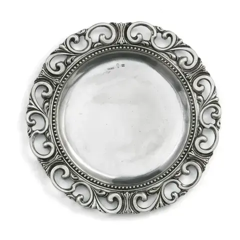 จานรองอาหารขอบลายนูนสีเงิน สำหรับตกแต่งโต๊ะอาหารในเทศกาลคริสต์มาส