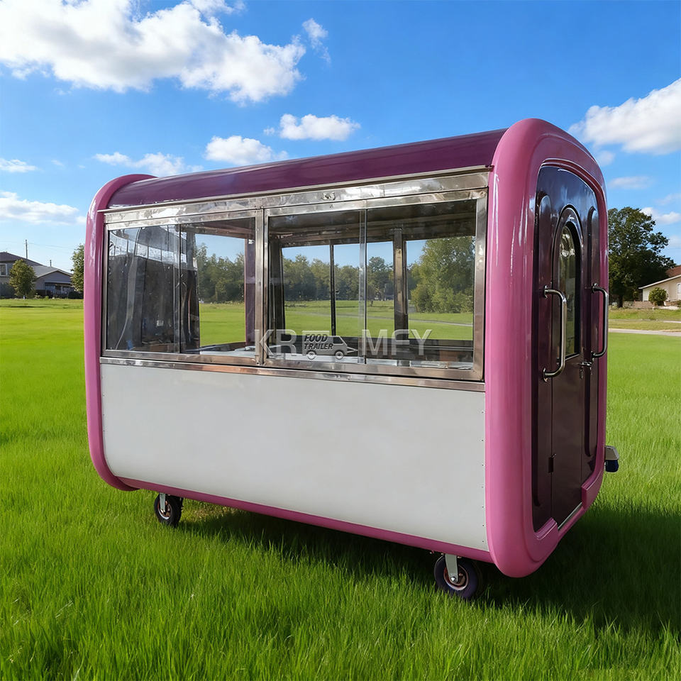 รถพ่วงร้านอาหารกลางแจ้งทรงกลมพร้อมอุปกรณ์ครบครัน รถขายไอศกรีมเคลื่อนที่ รถขายฮอทดอก ตู้ขายอาหารริมทาง