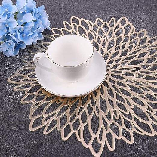 แผ่นรองจานทรงกลมแหวนตกแต่งลายดอกไม้สำหรับโต๊ะอาหารการตั้งค่าโต๊ะในบ้านหรืองานแต่งงาน
