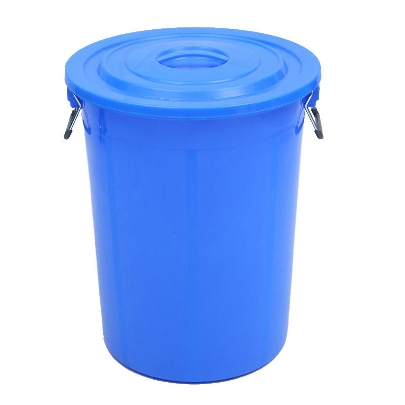 ถังพลาสติกทรงกลมพร้อมหูจับเหล็ก ดีไซน์ใช้งานได้หลากหลาย ผลิตด้วยวิธีฉีดขึ้นรูป เหมาะสำหรับจัดเก็บในโรงงาน