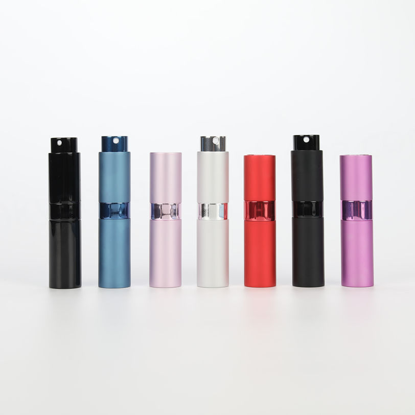 Round Pocket Sample Aluminum Atomizers 8 ml 10 ml Middle Ring Glass Inner Tube Perfume Bottles