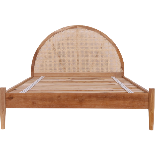 เตียงควีนทรงกลมที่มีการออกแบบที่เรียบง่ายคลาสสิกการผสมผสานระหว่างหวายและไม้สัก