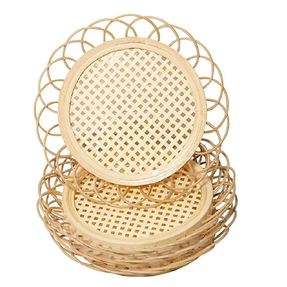 ที่รองแก้วหวายทรงกลมแผ่นรองแก้วหวายสำหรับใช้ในครัวเรือนดีไซน์แบบระดับพรีเมียมแผ่นรองแก้วหวายสำหรับตกแต่งโต๊ะในงานแต่งงาน